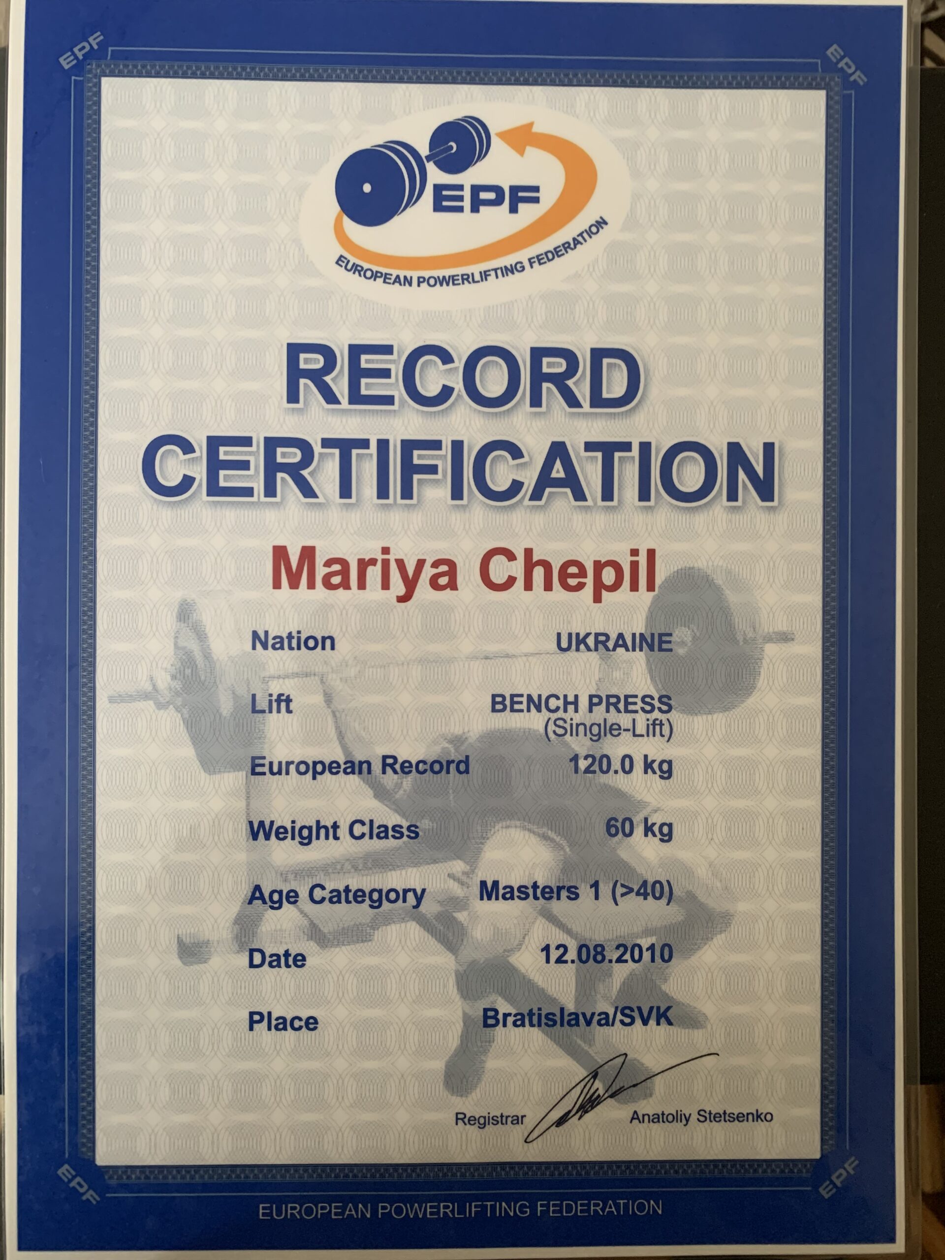 Грамота, районна державна адміністрація, 2005 р. Грамота Коломийського міського голови, 2006 р. Почесна грамота Коломийського міського голови, 2004 р. Record Certification, міжнародна федерація пауерліфтингу, 2010 р. Record Certification, Європейська федерація пауерліфтингу, 2010 р. Кращий спорсмен-викладач університету 2010 р. Почесна грамота, Івано-Франківська обласна державна адміністрація, 2012 р. Почесна грамота, Івано-Франківська обласна державна адміністрація, 2013 р. Відзнака •Краща спортсменка 2014 р.»