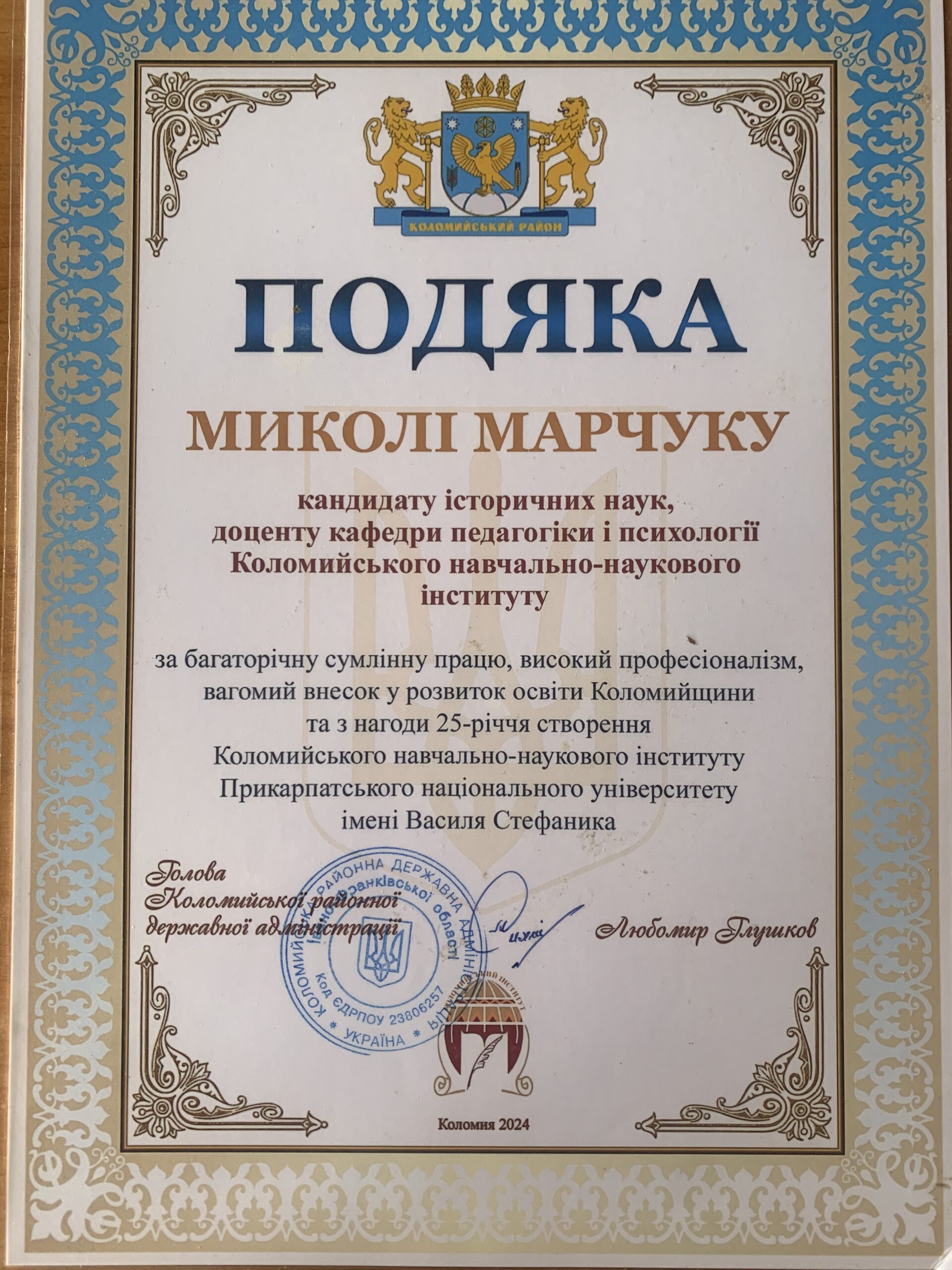Подяка Голови Коломийської районної державної адміністраціцї 2026 р. |